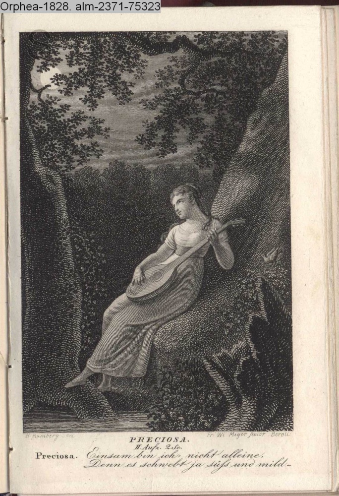 PRECIOSA. / II. Aufz, 2. Sc. / Preciosa. Einsam bin ich, nicht alleine, / Denn es schwebt ja süss und mild -