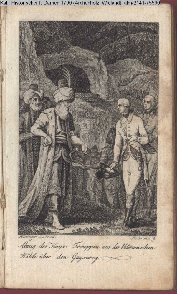 Illustration zu »Einige Denkmahle des Edelmuths und der Tapferkeit aus dem jetzigen Kriege wider die Türken / 5. Edles Betragen der Türken bey der Veteranischen Höhle.« INr 75610, Obj 35