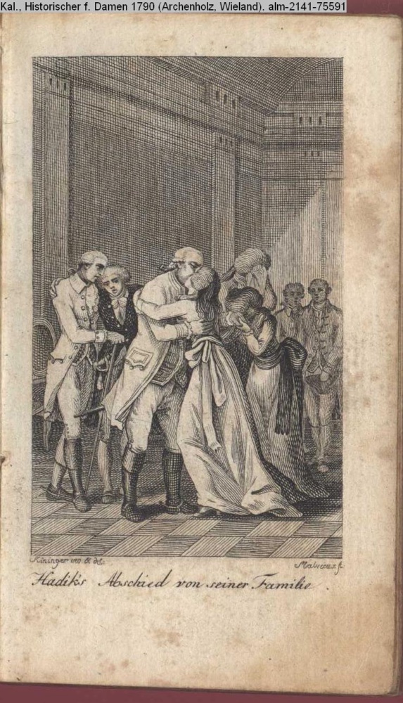 Illustration zu »Einige Denkmahle des Edelmuths und der Tapferkeit aus dem jetzigen Kriege wider die Türken / 6. Abschied des Grafen Haddick von seiner Familie. « INr 75611, Obj 36