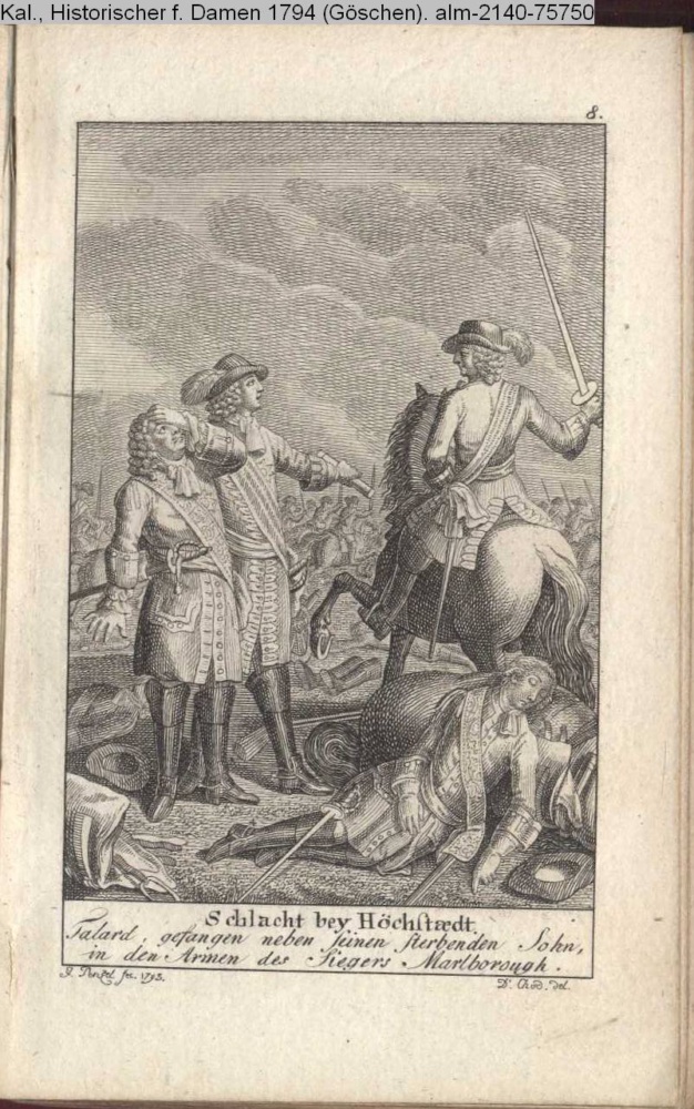 Schlacht bei Höchstedt / Talard, gefangen neben seinem sterbenden Sohn, / in den Armen des Siegers Marlborough