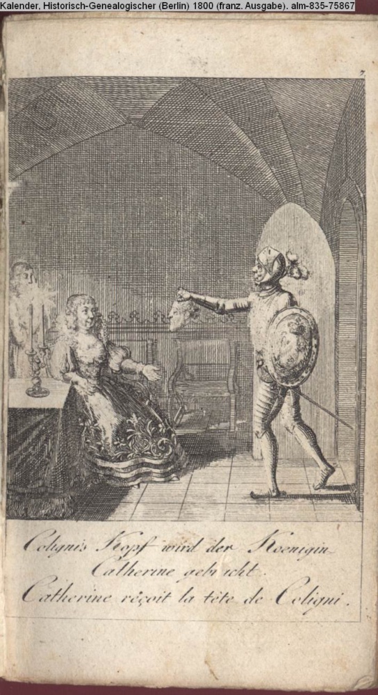 Coligni's Kopf wird der Koenigin / Catherine gebracht. / Catherine réçoit la tète de Coligni