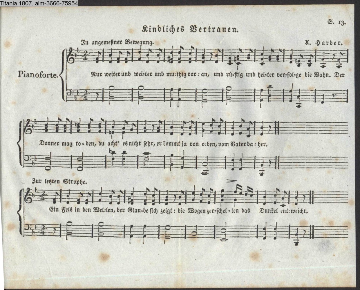 Vertonung des Gedichts »Kindliches Vertrauen«von F. K. Lang