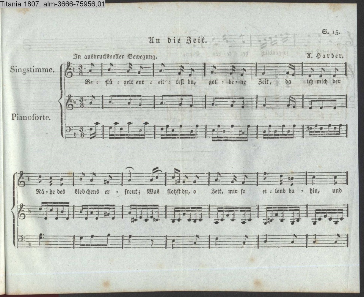Vertonung des Gedichts »An die Zeit« von L (vermutl. F. K. Lang)