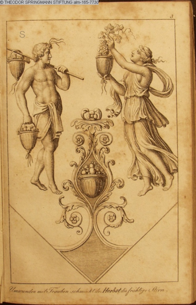 Umwunden mit Trauben schmückt der Herbst die fröhlige Stirn