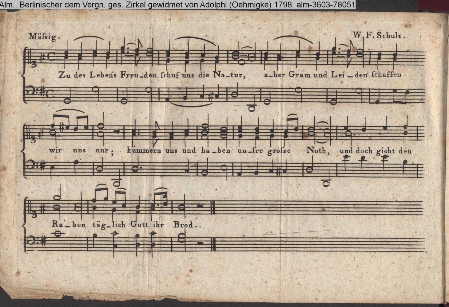 Vertonung des Gedichts »Beruf zur Freude« von F. v. Köpken