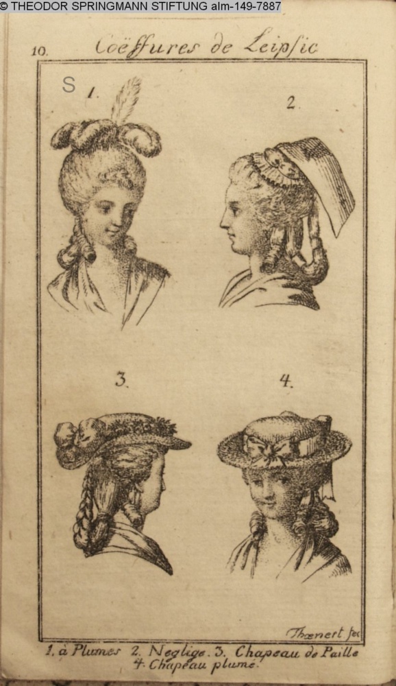 Coëffures de Leipsic / 1.à Plumes 2. Neglige. 3. Chapeau de Paille / 4. Chapeau plume