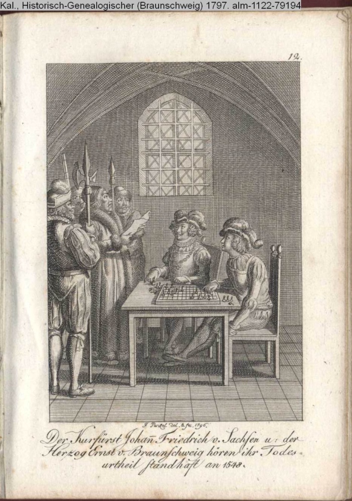 Illustration zu »Kurzgefaßte Geschichte der Deutschen seit der Erwählung Rudolfs von Habsburg bis zum Tode Karls des Fünften oder seit der Wiederherstellung des deutschen Königthums bis zum Religionsfrieden 1273-1558« INr 79209, Obj 31