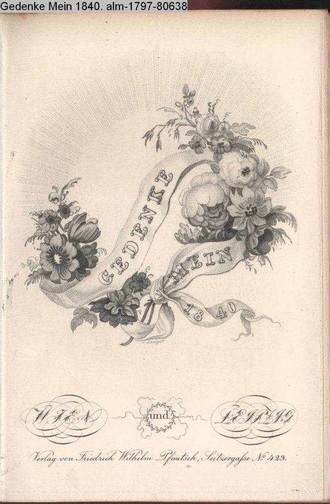 GEDENKE MEIN / 1840 / WIEN und LEIPZIG / Verlag von Friedrich Wilhelm Pfautsch, Seitzergasse No. 423