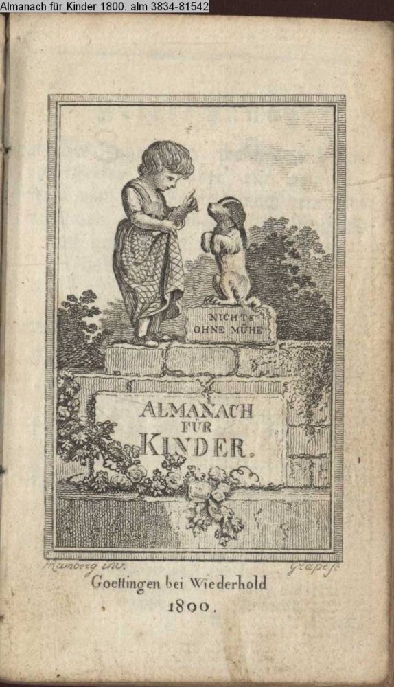 NICHTS / OHNE MÜHE / ALMANACH / FÜR / KINDER. / Goettingen bei Wiederhold / 1800