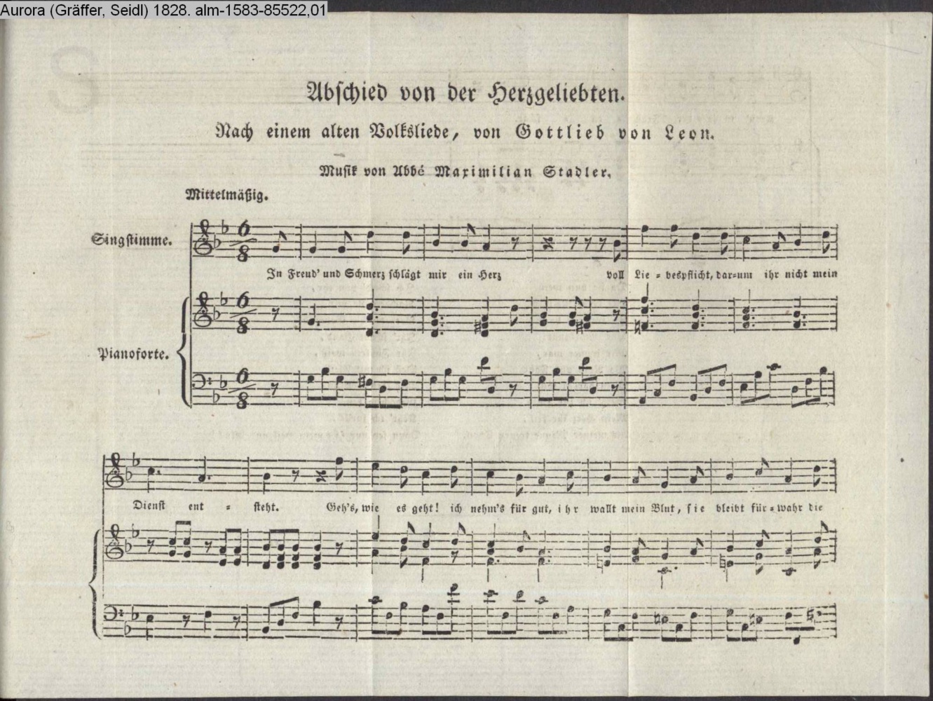 Abschied von der Herzgeliebten. / Nach einem alten Volksliede, von Gottlieb von Leon
