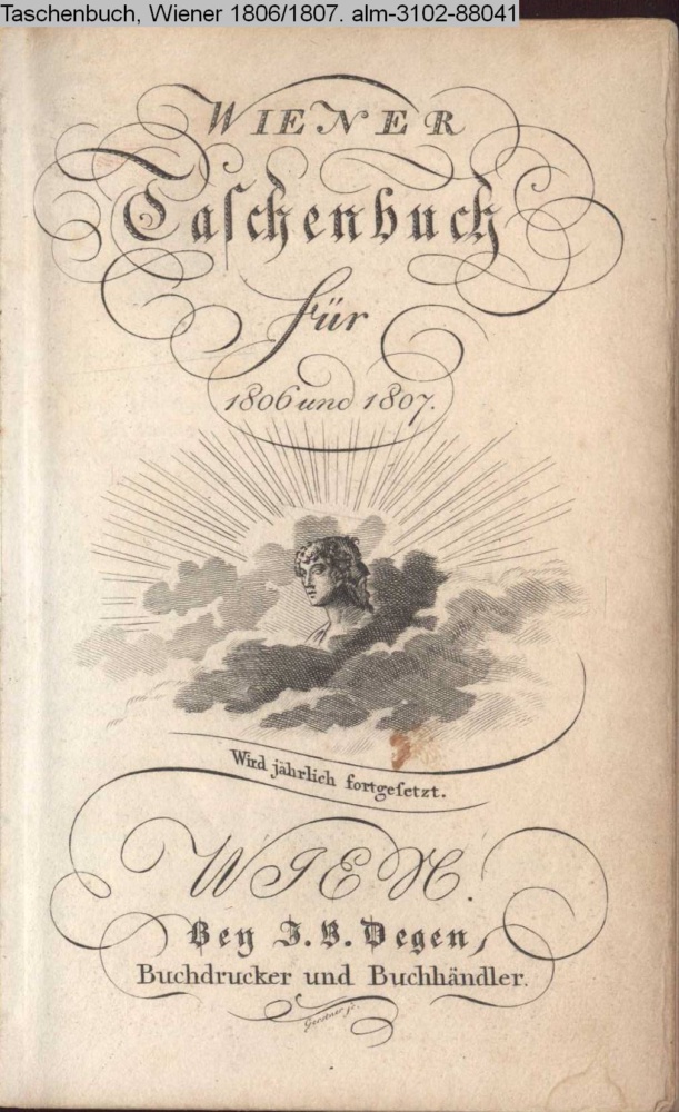 WIENER / Taschenbuch / für / 1806 und 1807. / Wird jährlich fortgesetzt. / WIEN. / Bey J. B. Degen, / Buchdrucker und Buchhändler