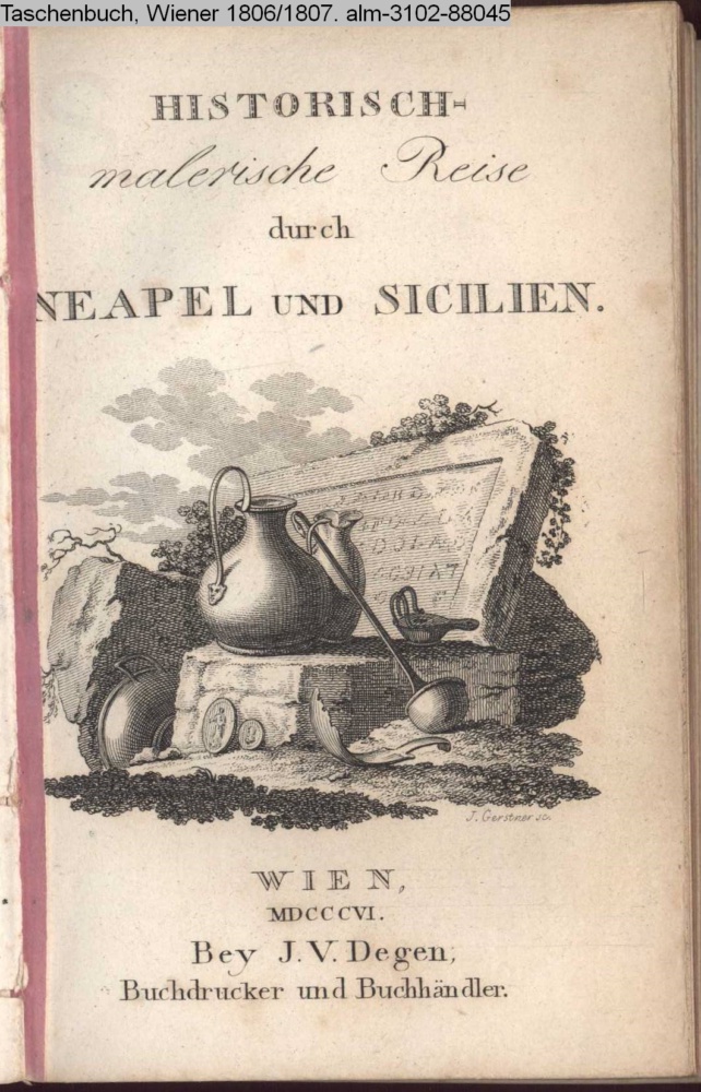 HISTORISCH- / malerische Reise / durch / NEAPEL UND SICILIEN. / WIEN, / MDCCCVI. / Bey J. V. Degen, / Buchdrucker und Buchhändler
