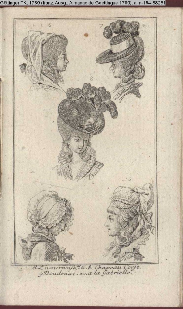 6. Livournoise 7. & 8. Chapeau Corse. / 9. Boudeuxe. 10. a la Gabrielle