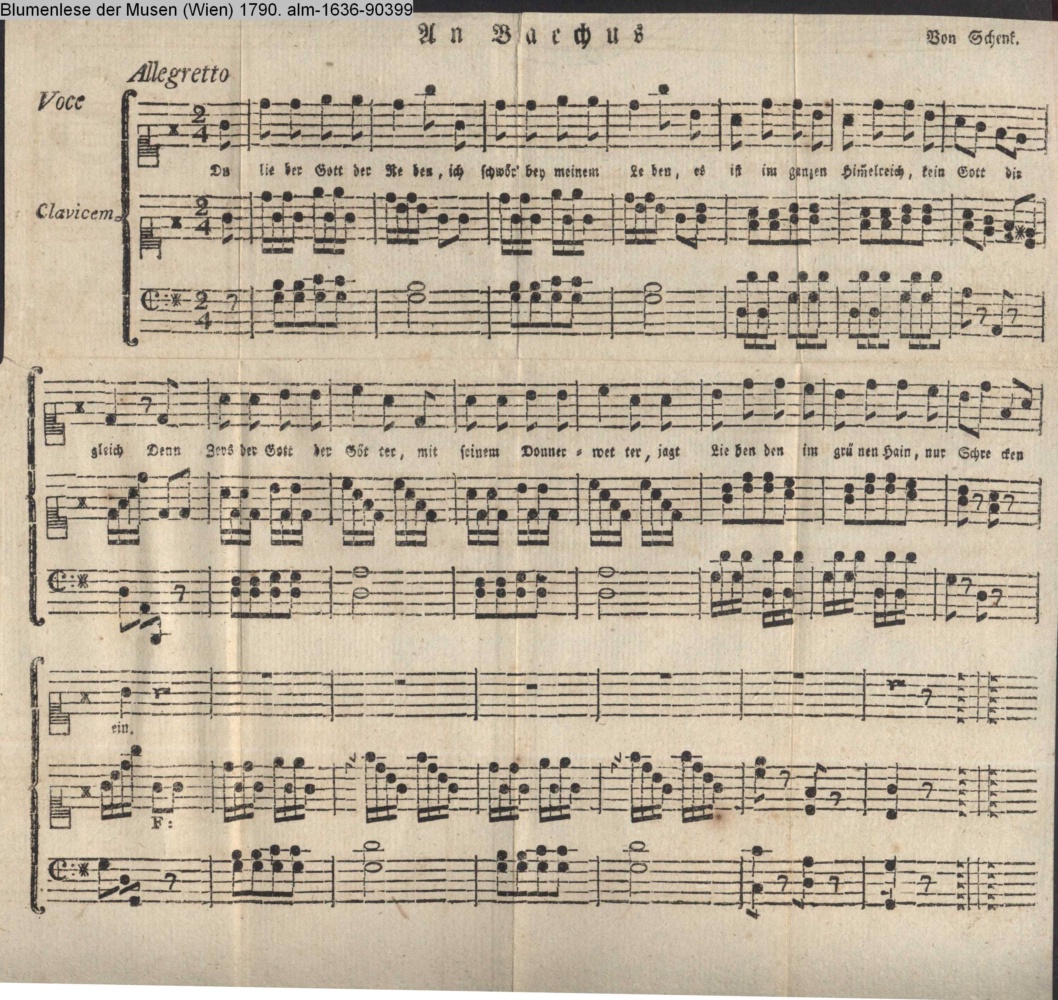 Vertonung des Gedichts »An Bacchus« von J. K. von Lackner;