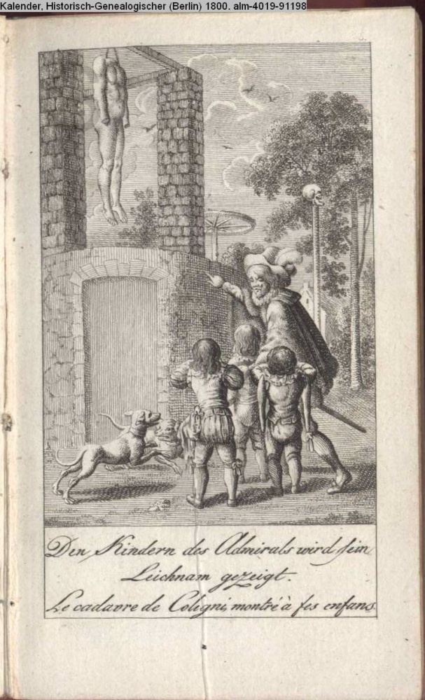 Den Kindern des Admirals wird / sein Leichnam gezeigt. / Le cadavre de Coligni, montré à ses enfants
