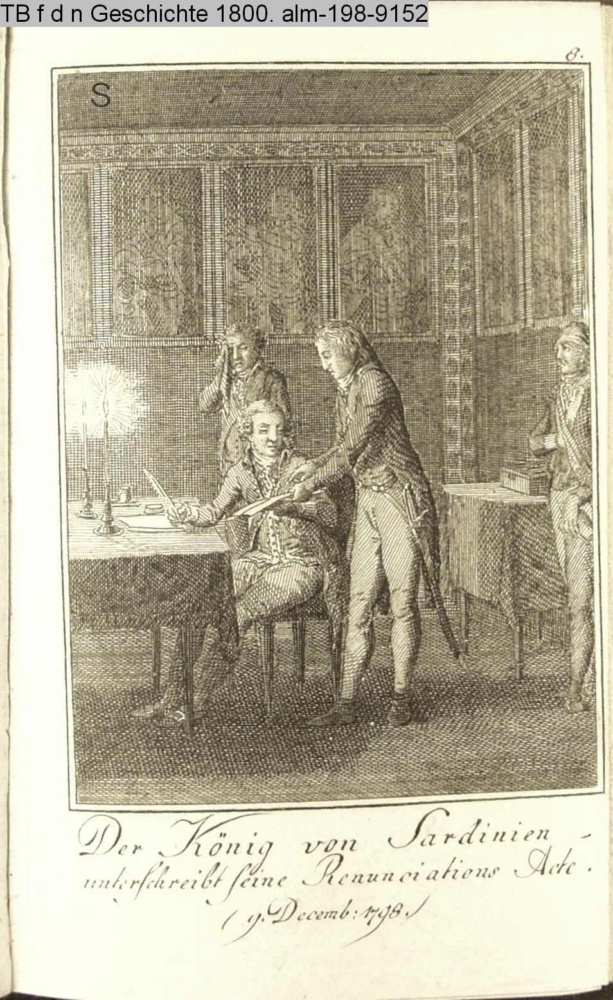 Der König von Sardinien / unterschreibt seine Renunciations Acte (9. Decemb. 1798.)