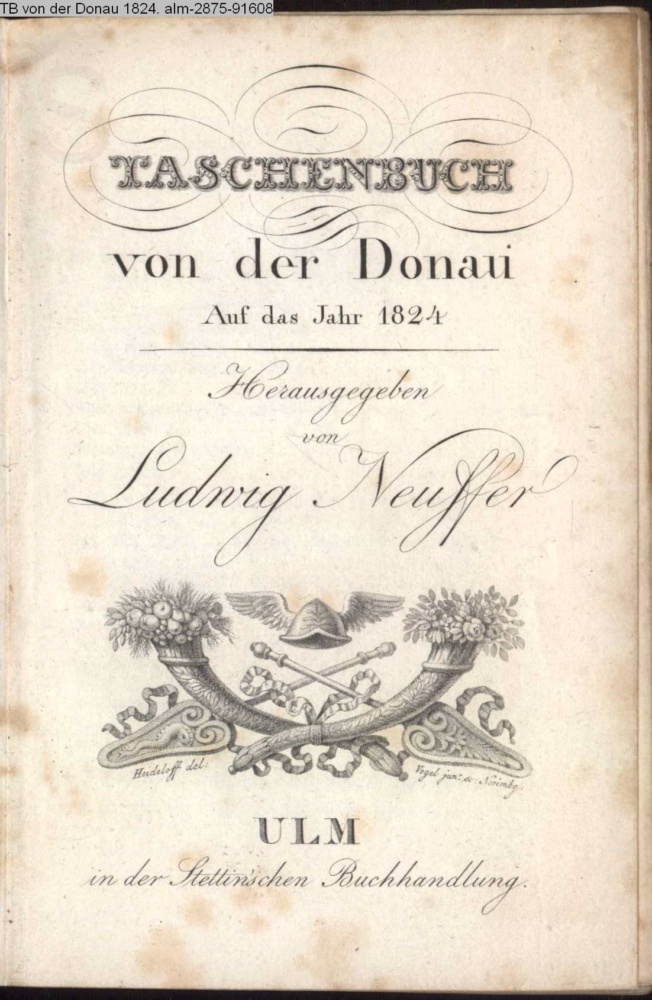 TASCHENBUCH / von der Donau / Auf das Jahr 1824 / Herausgegeben / von / Ludwig Neuffer / ULM / in der Stettin'schen Buchhandlung