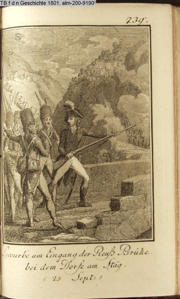 Lecourbe am Eingang der Reuß Brüke / bei dem Dorfe am Stäg. / (25. Sept.)