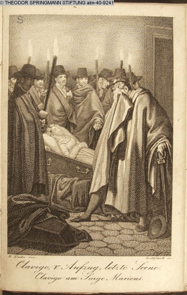 Clavigo, V. Aufzug, letzte Scene. / Clavigo am Sarge Mariens