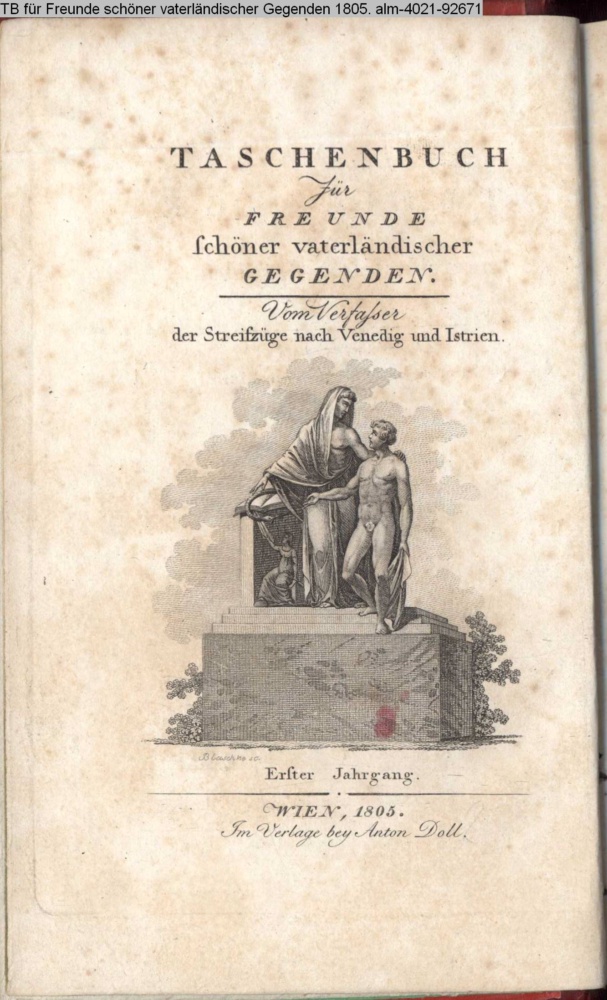 Taschenbuch / für / FREUNDE / schöner vaterländischer / GEGENDEN. / Vom Verfasser / der Streifzüge nach Venedig und Istrien. / Erster Jahrgang. / Wien, 1805. / Im Verlage bey Anton Doll
