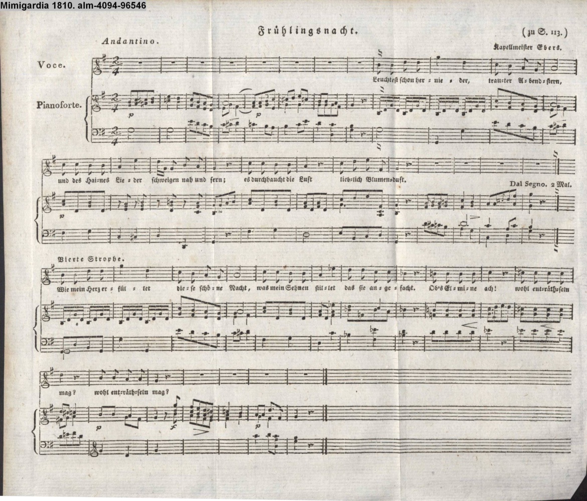 Vertonung des Gedichts »Frühlingsnacht« von v. Vagedes