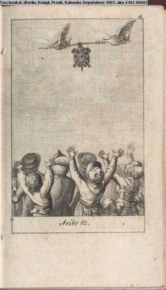 Illustration zu »Die Schildkröte und die beiden Enten« von J. La Fontaine INr 96694, Obj 19