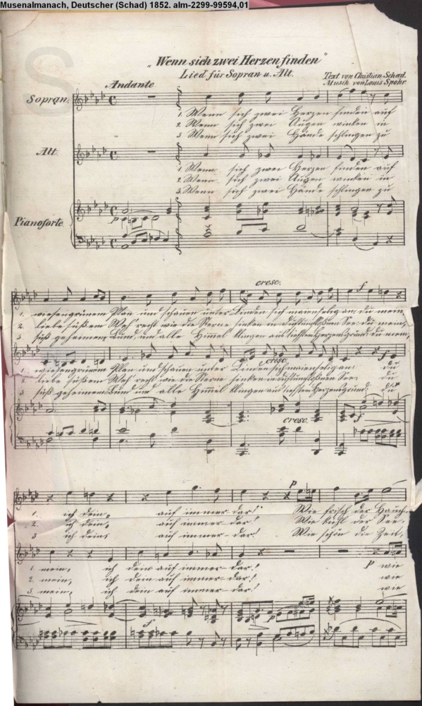 Vertonung des Gedichts »Wenn sich zwei Herzen finden« von Chr. K. Schad