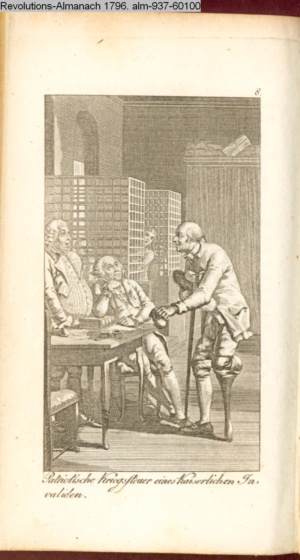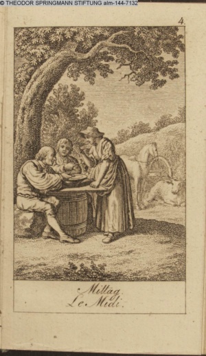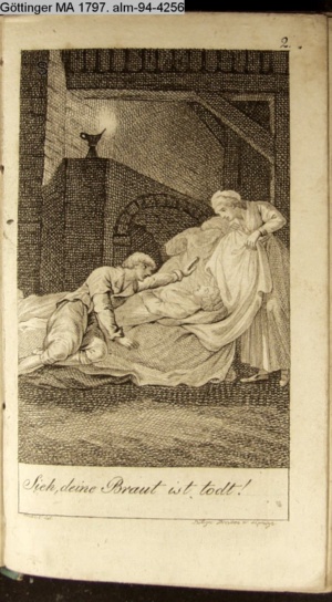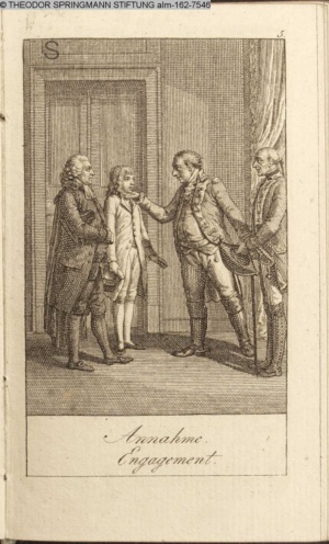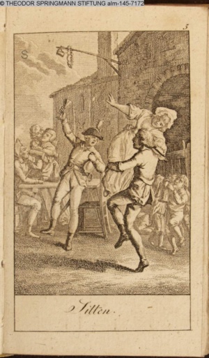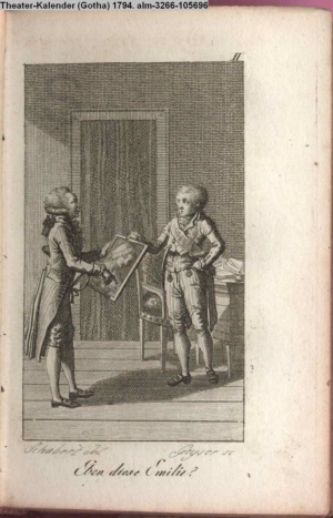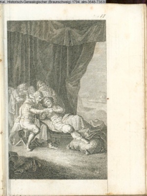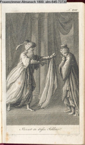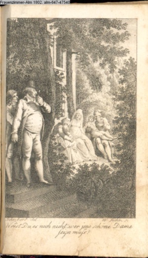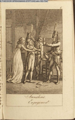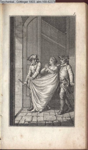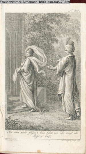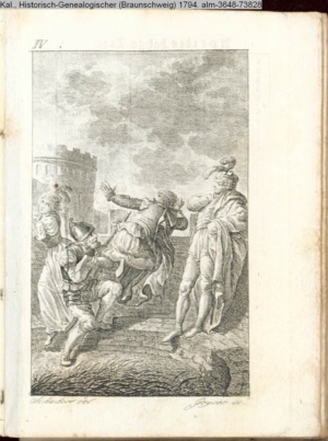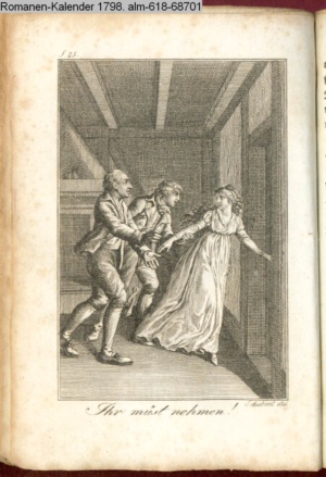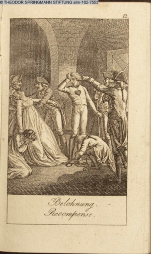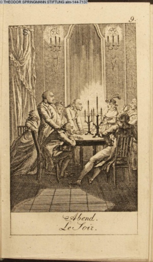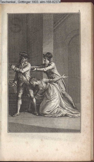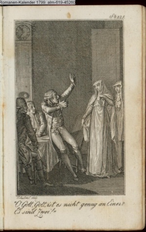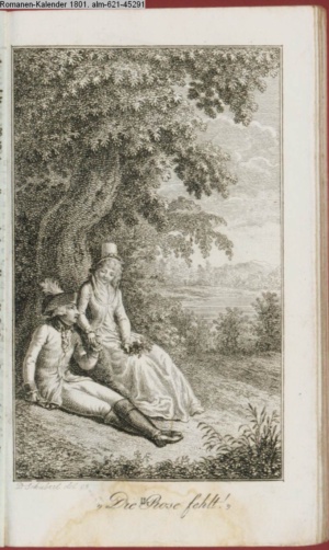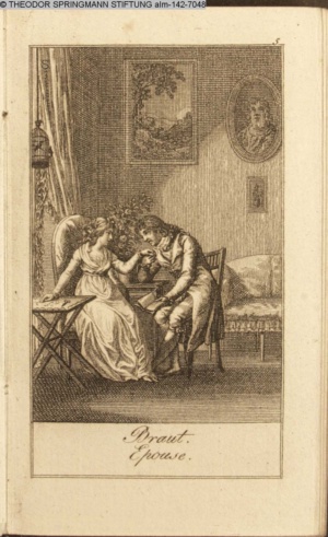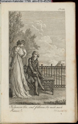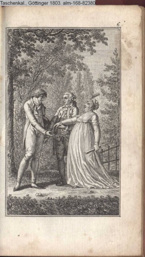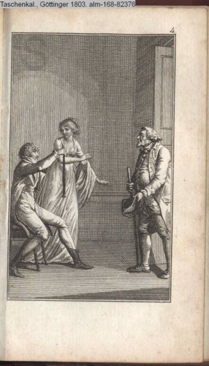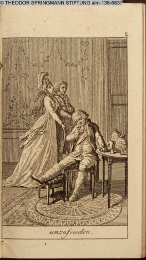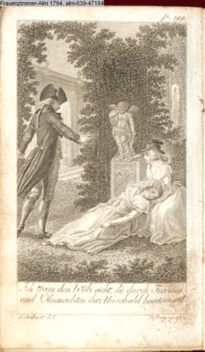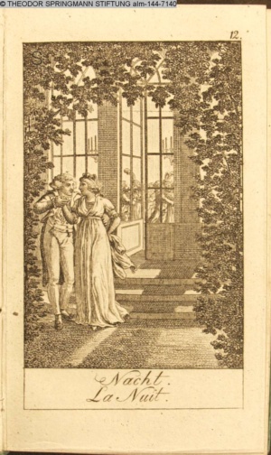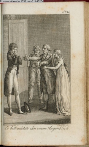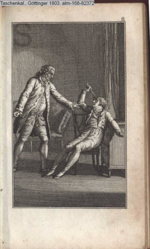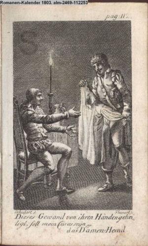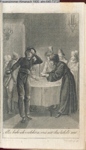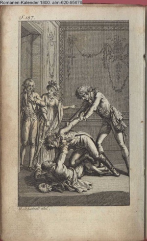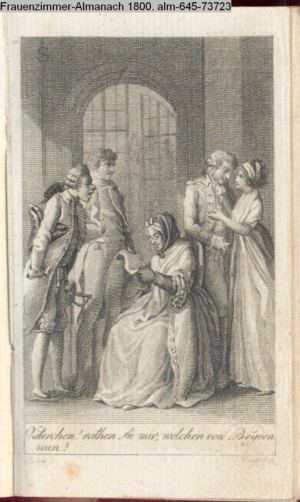 Graphik im Kalendarium paginiert V. Illustration zu »Die Wette oder: die beschämte Eifersucht«