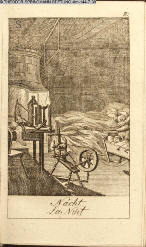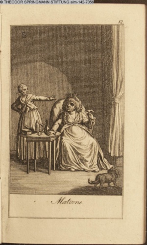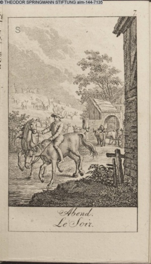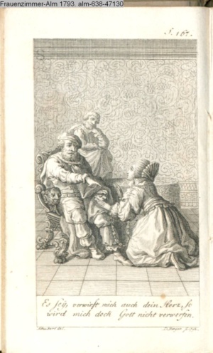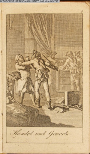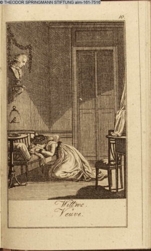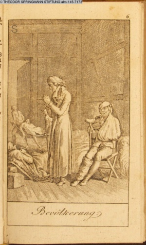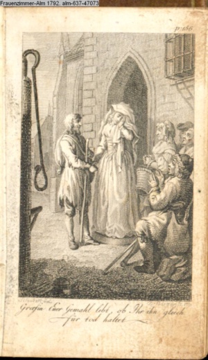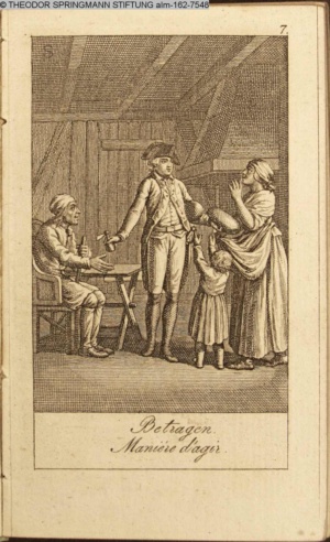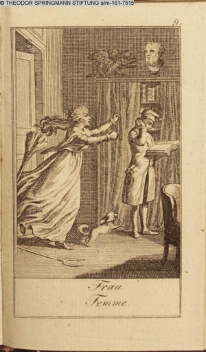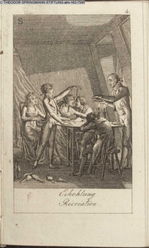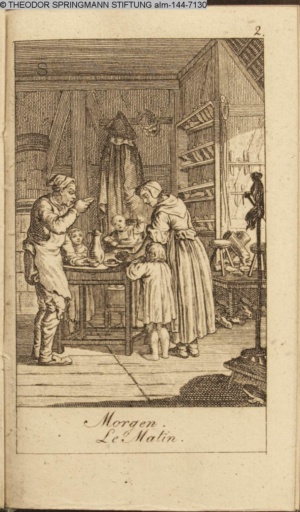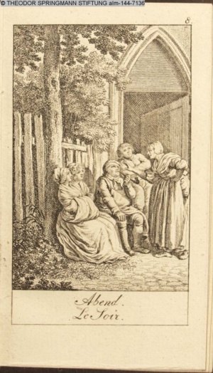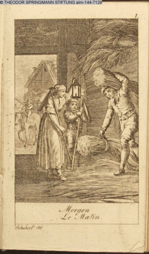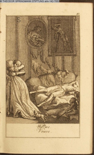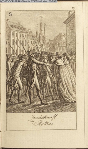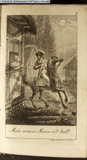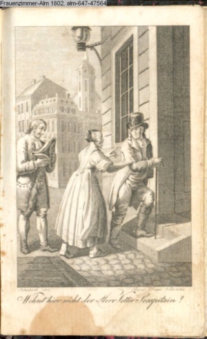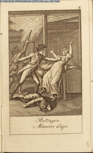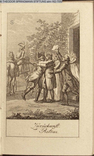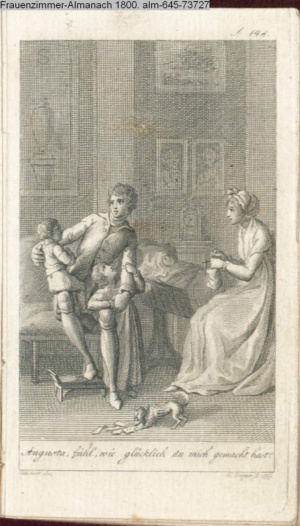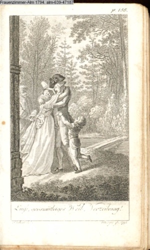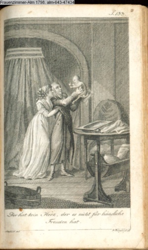 Graphik im Kalendarium paginiert III. Illustration zu »Die gerettete Häuslichkeit, oder: der wiedergewonnene Gatte«