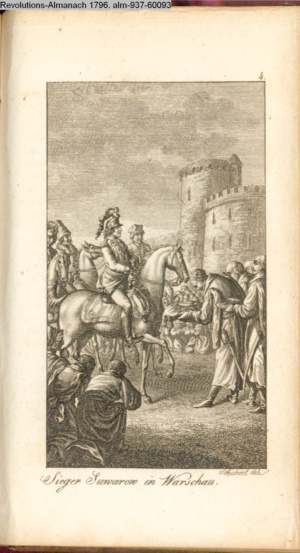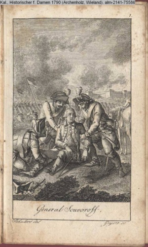 Illustration zu »Einige Denkmahle des Edelmuths und der Tapferkeit aus dem jetzigen Kriege wider die Türken / 1. General Suwarow« INr 75606, Obj 31