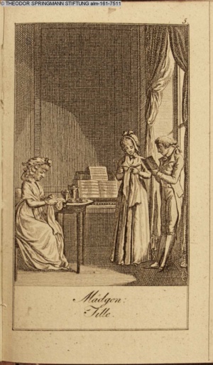 Graphik im Kalendarium paginiert II. Illustration zu »VI. Scenen aus der Familie Ehrenberg 2. Amalie Trunemann«