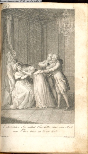Graphik im Kalendarium paginiert I. Illustration zu »Scenen aus der Familie Ehrenberg. 1. Charlotte Waller«
