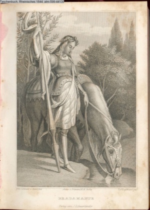 [unter der Graphik: Atelier v. Grünewald & Cooke / Verlag von J. D. Sauerländer] Illustration zu » Der rasende Roland« von L. Ariosto s. Textbezug INr 44134, Obj 9