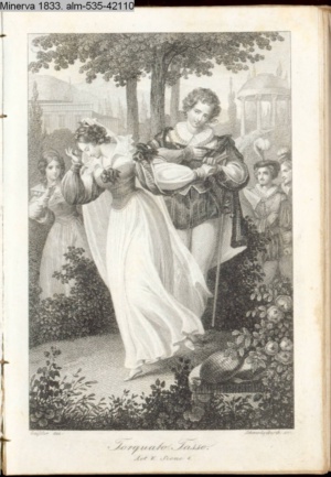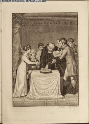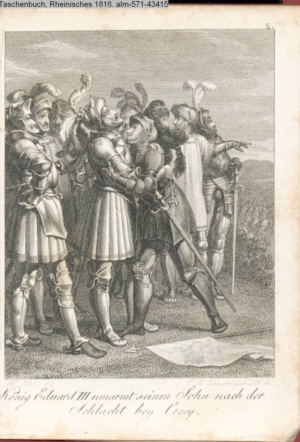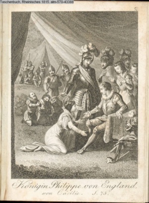 Illustration zu »Geschichte der Königin Philippe von England, Gemahlin Edward des Dritten« von Cäcilie d.i. Amalie Henriette Caroline von Voigt INr 43396, Obj 25