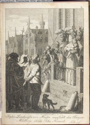 Illustration zu » Sophie, Herzogin von Brabant und Landgräfin von Hessen« von Cäcilie d.i. Cäcilie d.i.: Amalie Henriette Caroline von Voigt INr 43363, Obj 25