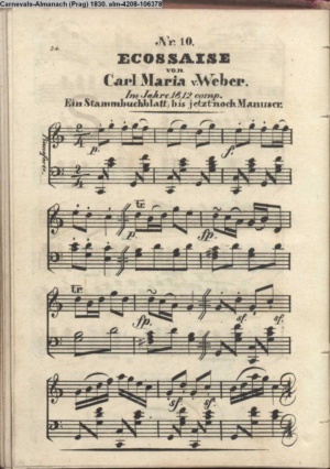 Anhang zu Beckers Taschenbuch 1818 enthaltend: Compositionen und Tänze von Blüher, Dotzauer, Ehrhardt, Methfessel, Minna Schütze, C. M. v. Weber (Sammlung INr 19807, Obj 100) (Photos 19812,01-19812,03)