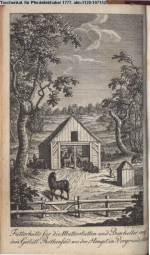 Illustration zu »IV. Pferdezucht. Beschreibung des Churfürstl. Pfalz.-Bayrischen Gestüts zu Rothenfeld« INr 107175, Obj 24
