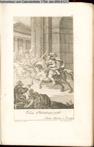 lt. Anm. im G-Verz aus: Seltene und erhabene Ansichten der Natur, nach den besten und kostbarsten Werken und Zeichnungen gestochen, und mit einer Schilderungen versehen. Nebst 8 Kupfern und einer Vignette, Breslau und Leipzig bei Korn, 1794 4°