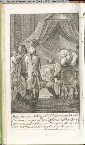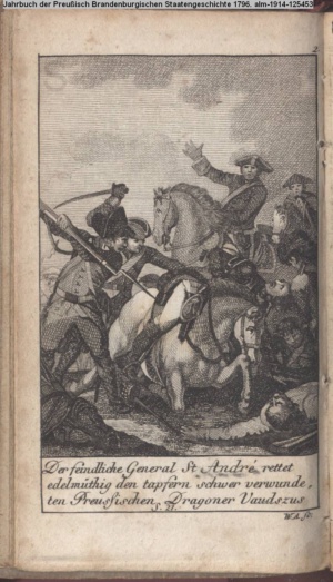 Illustration zu »Fortsetzung der Geschichte der Mark Brandenburg. Friedrich II. Zweyte Abtheilung oder Geschichte des siebenjährigen Krieges. Erste Hälfte. 1756-1759.« INr 72381, Obj 23
