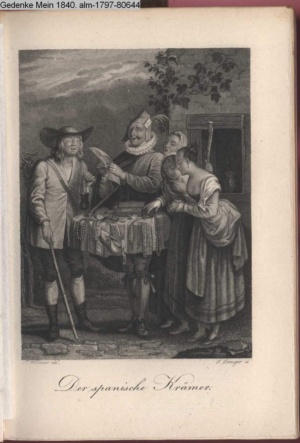 Bildliche Darstellungen zu dramatischen Werken vaterländischer Dichter. Zweite Lieferung (Sammlung INr 85530, Obj 7) Illustration zu »Zwei Nächte zu Valladolid« von J. C. v. Zedlitz