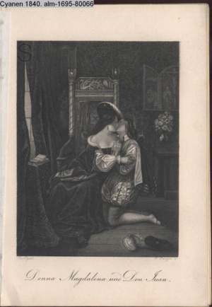 Bildliche Darstellungen zu dramatischen Werken vaterländischer Dichter. Dritte Lieferung (Sammlung INr 85571, Obj 5) Illustration zu »Donna Diana« von C. A. West d.i. A. Schreyvogel
