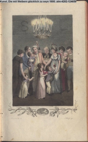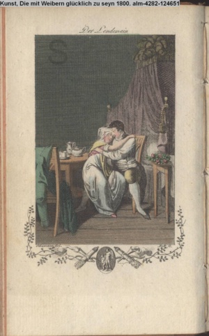 kol. Illustration zu »Die Kunst mit Weibern glücklich zu seyn; ein Seitenstück zur Kunst mit Männern glücklich zu seyn« von Chr. G. Flittner INr 124661, Obj 14; s. Textbezug INr 124657, Obj 10