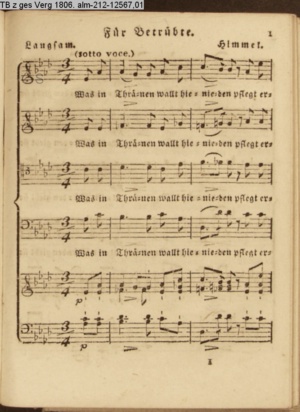 Vertonung (Vierstimmiger Satz) des Gedichts »Für Betrübte« von G. P. Schmidt