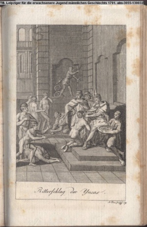Illustration zu »Mode Thorheiten«, hier zu »Rosenfeld in seinem Serail« aus: Berlinische Monathsschrift 1783 S. 74.