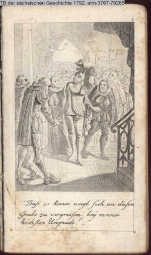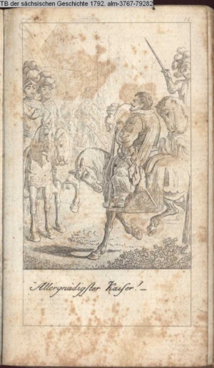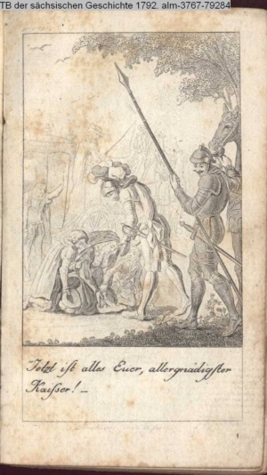 Illustration zu »Johann Fridrichs des Großmüthigen, des letzten Churfürsten zu Sachsen, Ernestische Linie, Niederlage und Gefangenschaft bei Mühlberg« von K. G. Cramer INr 79280, Obj 5