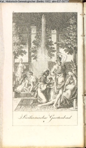 Graphik im Kalendarium September; paginiert 6. Illustration zu »Das armenische Gastmahl« INr 58810, Obj 41 s.a. Textbezug INr 58826, Obj 57