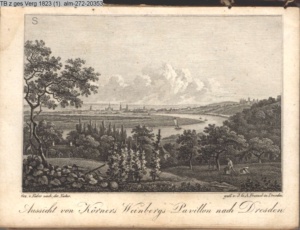 Aussicht von Körners Weinbergs-Pavillon nach Dresden
