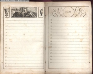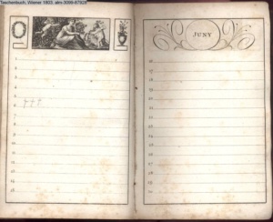 Tabellen zur Bemerkung der Festtage des häuslichen Glücks und des gesellschaftlichen Lebens (Sammlung INr 88012, Obj 36)