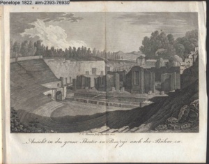 Ansicht in das große Theater zu Pompeji nach der Bühne zu