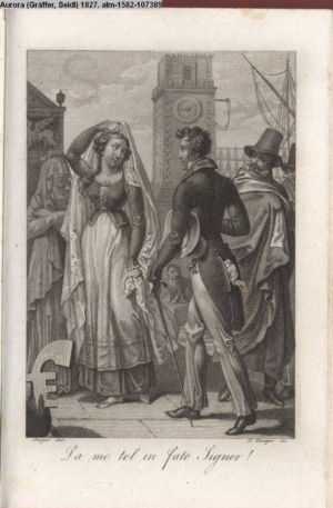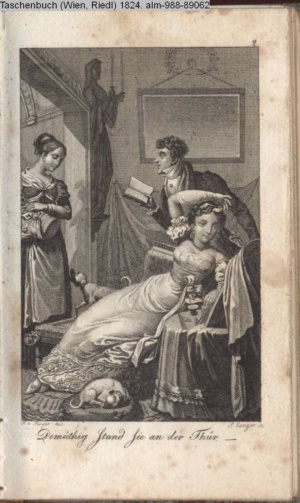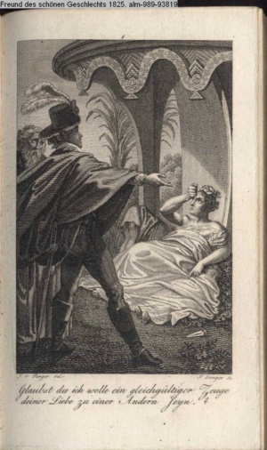 Bildliche Darstellungen zu dramatischen Werken vaterländischer Dichter. Dritte Lieferung (Sammlung INr 85571, Obj 5) Illustration zu »Donna Diana« von C. A. West d.i. A. Schreyvogel